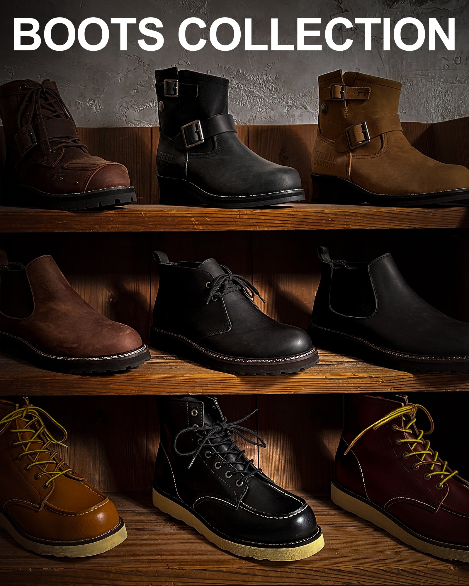 バイカーブーツは、ライディングブーツとも言われます。 その名の通り、バイクに乗る時に履く靴。 靴全体が頑丈で、特につま先やかかとが補強されている。 サイドジッパー、シフトガードやスチールトゥキャップなどライダーのために開発されたブーツ。